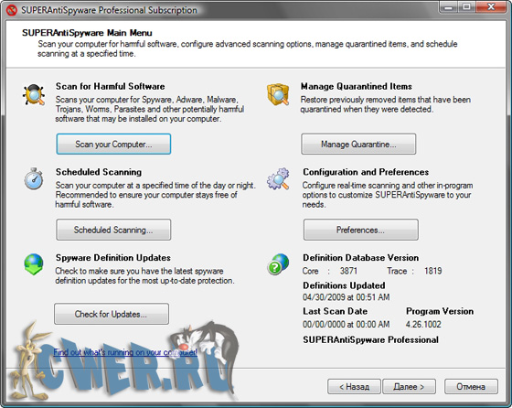 Скачать SUPERAntiSpyware Professional 4.26.0.1002 Final (4,8 МБ):