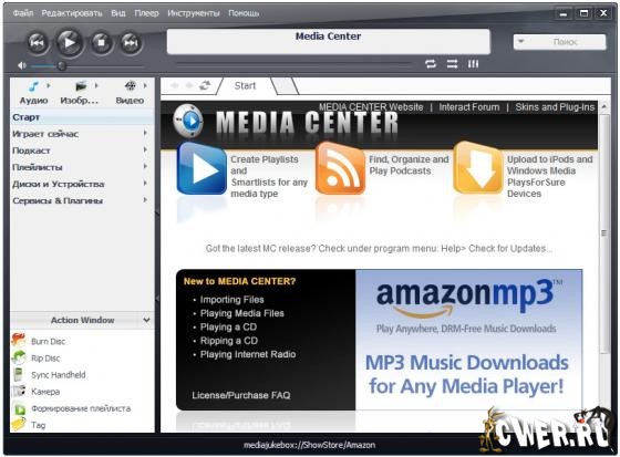J.River Media Center - мультимедийный центр (раньше назывался Media Jukebox). Проигрывает большинство популярных аудио и видео форматов, включая MP3, аудио CD (поддерживает CDDB) и DVD, может преобразовывать CD-аудиотреки в WAV и MP3, переписывать на жесткий диск виниловые диски и кассеты (убирая при этом помехи и шумы), а также создавать аудио-CD, причем для всех этих функций программа имеет множество настраиваемых параметров. Кроме этого, есть очень хороший и мощный по своим возможностям органайзер мультимедийных файлов, медиаредактор, эквалайзер, встроенный DSP и удобный планировщик заданий для автоматизации процессов проигрывания/записи, а также поддержка пульта ДУ. Из необязательных, но приятных функций - становящаяся уже почти стандартом для "приличных" программ возможность изменения внешнего вида с помощью скинов, мини-режим проигрывателя и "телевизор" (c картами ATI).
