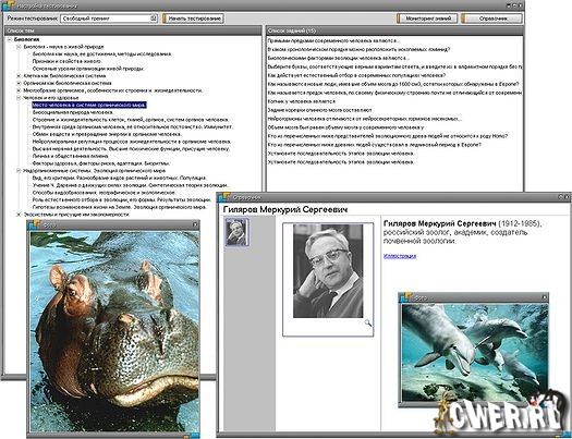 Система предлагает 4 режима работы с тестовыми заданиями: "Свободный тренинг", "Свободный экзамен", "ЕГЭ", "Мониторинг знаний".