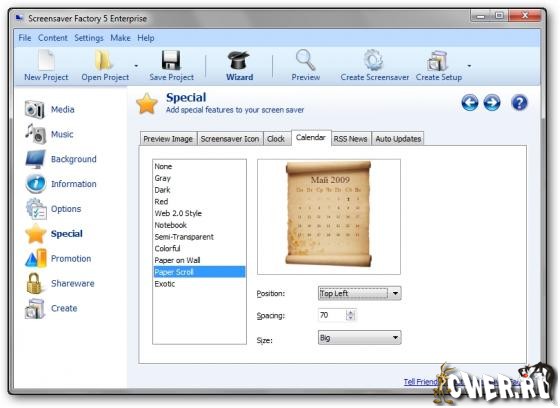- Создание самораспаковывающихся файлов и CD дисков для легкого распространения заставок