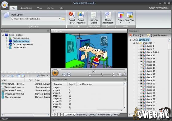 Программа для конвертирования SWF в FLA и извлечения из них различных ресурсов. С помощью утилиты можно извлекать звуки, изображения, сценарии, шрифты и многое другое из обычных Flash-роликов (SWF, EXE). Sothink SWF Decompiler позволяет конвертировать Flash-файлы в формате SWF в FLA. Программа также содержит инструмент SWF Catcher, который позволяет захватывать Flash-анимацию, просматриваемую в браузерах Internet Explorer или Firefox.