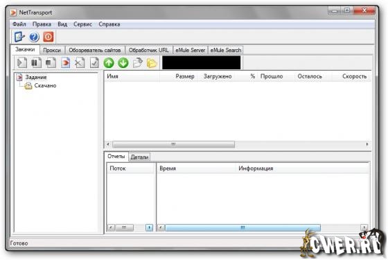 Net Transport - популярный менеджер загрузки файлов, позволяющий быстро и эффективно скачивать файлы. Программа поддерживает несколько протоколов передачи данных: HTTP/HTTPS, FTP/SFTP (SSH File Transfer Protocol), MMS (Microsoft Media Services), RTSP (Real-Time Streaming Protocol). Поддерживается докачка после обрыва связи, разбивка на части, прокси, интеграция в браузер и др.