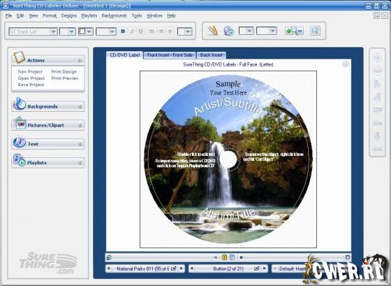 SureThing CD/DVD Labeler относится к разряду профессиональных утилит, помогающих создать обложку для только что записанного CD или DVD. Однако если сравнивать эту программу с похожими продуктами, то разница окажется огромной. Это все равно что, например, сравнивать Photoshop и Paint.