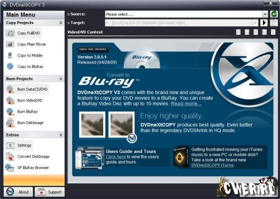 DVD neXt Copy - программа для копирования DVD. Программа позволяет делать резервные копии DVD фильмов. Предпросмотр трэков перед и во время копирования, поддержка однослойных и двухслойных дисков, мультиканального звука (Dolby digital 5.1, dts), поддержка NTSC и PAL DVD фильмов, делают эту программу одной из лучших в своём классе.
