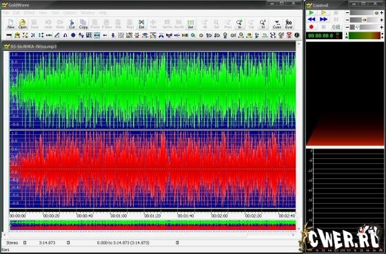 GoldWave - очень мощный звуковой редактор, предназначенный для проигрывания, редактирования, смешивания и анализа звуковых файлов. Умеет быстро работать с большими файлами. Имеет много разных эффектов. Понимает MP3, WAV, AU, IFF, VOC, SND, MAT, AIFF, raw, data, а также множество прочих форматов. Умеет конвертировать из одного формата в другой. С помощью GoldWave можно применять всевозможные эффекты (добавлять эхо, эффект "увядания" звука (Fade), редактировать эквалайзером и пр.) убирать шумы, реставрировать старые записи и т.д. GoldWave позволяет записывать звук с кассет, пластинок, радио, а также с микрофона. Инструмент CD Reader дает возможность делать точные копии треков аудиодисков.