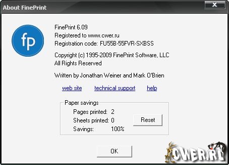 - Отображение количества сэкономленной при помощи FinePrint бумаги
