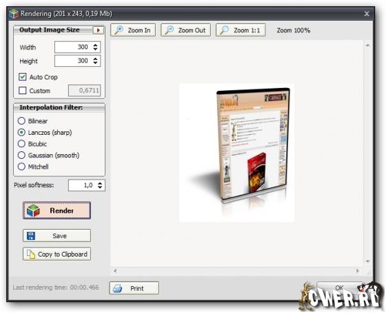 Главное преимущество программы True BoxShot заключается в том, что она создает изображения с высоким качеством с точностью до суб-пикселей. Таким образом, изображение получается четким, без размытых контуров. Используя программу True BoxShot, у Вас есть возможность осуществлять 3D поворот изображения, применять эффекты тени и отражения. Вы можете сами определять размеры бокса, также как и интенсивность эффектов. Кроме того, Вы сможете просматривать изображения в предварительном просмотре при внесении изменений.
