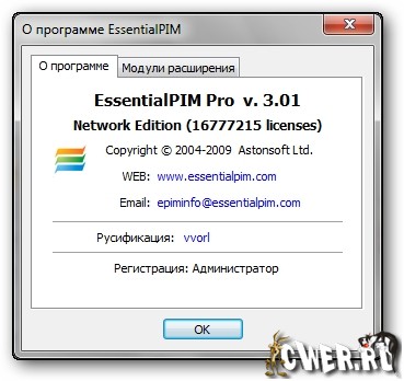 Скачать программу EssentialPIM Pro 3.01 (17,63 МБ):