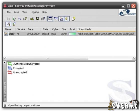 Secway SimpPro - программа, которая позволяет осуществлять надежное шифрование сообщений и файлов перед их передачей через различные IM-сети, а так же аутентификацию Ваших собеседников по их открытым ключам. Поддерживается шифрование сообщений в сетях MSN Messenger, AIM, ICQ, Yahoo! и зашифрованная передача файлов в MSN Messenger и ICQ. Для шифрования самих сообщений и файлов используются симметричные шифры AES, 3DES, CAST и Twofish c длиной ключа 128 бит. Для безопасной передачи симметричного ключа шифруемой сессии и аутентификации собеседников используются ассимметричные шифры RSA 2048-4096 bit, ElGamal/DSA 1024/2048 bit, Elliptic curve over GF(p) 256/521 bit.