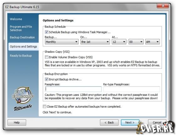 EZ Backup Ultimate - программа, созданная для легкой автоматизации резервирования ваших данных с различных популярных программ на локальный диск, сетевую папку, CD и DVD диск или же на удаленный FTP сервер. Функция планирования создания резервной копии обеспечивает полностью автоматизированное решение и 128 битное шифрование данных для наибольшей защиты резервного архива. Использование формата ZIP позволяет вашим резервным копиям быть сжатыми и защищенными с использованием вашего пароля. EZ Backup работает с планировщиком Windows чтобы обеспечить полностью автоматическое резервирование.