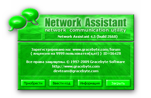 Network Assistant - программа для общения и эффективного взаимодействия по локальной сети, не требующая работы выделенного сервера. Основные возможности: многоканальный чат; общая доска для рисования; мгновенные сообщения; передача файлов; управление процессами на удаленном компьютере; просмотр копии экрана/буфера обмена удаленного компьютера; статистика использования; сигнализаторы удаленных событий и др. Имеет пять стандартных состояний и позволяет создавать до десяти пользовательских. Совместима с WinPopup. Присутствует доска обьявлений, для нее требуется открыть на одном из компьютеров в сети папку на полный доступ. Для обьявлений можно выставить срок жизни в днях.