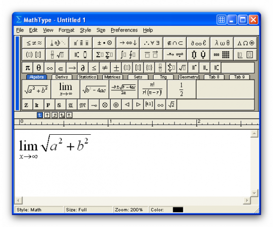 MathType — программа, которая помогает вам создавать и вставлять математические формулы и уравнения в такие программы как Microsoft Word, PowePoint и некоторые другие. MathType содержит огромную коллекцию математических выражений и символов, которые позволят без труда написать даже самое сложное уравнение (более 500 математических символов и шаблонов: дроби, радикалы, суммы, интегралы, произведения, матрицы, различные виды квадратных и фигурных скобок).