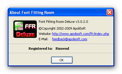 Font Fitting Room - менеджер шрифтов с предварительным просмотром. Предназначен для установки и удаления шрифтов True Type font(*.ttf, *.ttc) и других возможностей других типов шрифтов. В том числе обработка шрифта для более душевного отображения на ЖК(LCD) мониторах.