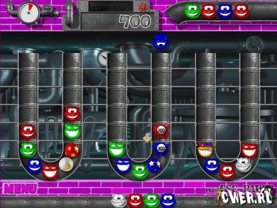 Вам предстоит нелегкая задача выстроить в ряд хотя бы три бусинки. Загвоздка в том, что игровые поля (всего их четыре) имеют форму изогнутых водопроводных труб, в которые следует поместить разноцветные значки.