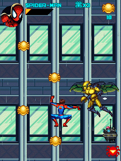 Green Goblin распространяет сыворотку, способную превратить невинных горожан в монстров-мутантов. Взяв на себя роль Spider-Man, вы будете противостоять сильным противникам: Electro, Shocker, Rhino, Vulture, Doc Oc и многим другим. Победите их и возьмите их ДНК, чтобы разработать противоядие сыворотке Green Goblin. По мере развития сюжета, вы откроете много новых возможностей Spider-Man: плетение паутины, лазанье по стенам и новые движения в бою. Художественная анимация и дизайн удачно передают всю сущность знаменитого комикса о Spider-Man. Размеры экранов: 240x320.