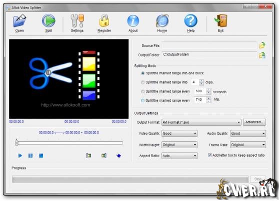 Allok Video Splitter - мощная сервисная программа для разделения, обрезания (подрезки) больших AVI, DivX, Xvid, MPEG, WMV, ASF, RM, MOV, 3GP или MP4 файлов на маленькие клипы в различных форматах. Встроенный видео проигрыватель и различные режимы разделения позволят вам с легкостью разделить или обрезать видео файл на маленькие клипы. Вы можете даже использовать данную программу для конвертирования отдельного файла. К выходным форматам относятся AVI, MPEG I/II, VCD, SVCD, DVD, WMV. Все кодировщики/кодеки уже встроены и любое преобразование может быть сделано после скачивания данной программы. Данная программа не требует каких-либо дополнительных технических навыков и очень проста в использовании.