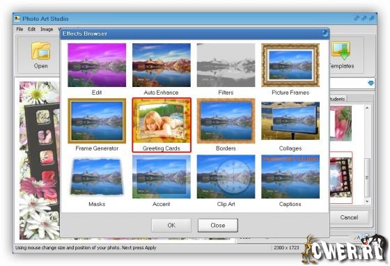 Photo Art Studio представляет собой новое программное обеспечение для украшения фотографий. В комплект входит пакет из пяти удобных программ для создания открыток, коллажей, наложения рамок и пакетной обработки фотографий. В течение буквально нескольких секунд, вы сможете создать стильную рамку, создать открытку или коллаж.