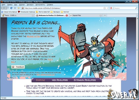 Скачать Mozilla Firefox 3.5 RC1(8 МБ):