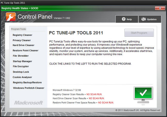 PC TuneUp Tools 2011 - идеальное решение проблемы оптимизации Вашего компьютера. Это мощное средство по настройке Вашей системы наиболее оптимальным способом, очистке Вашего реестра и диска, а также оптимизации производительности.