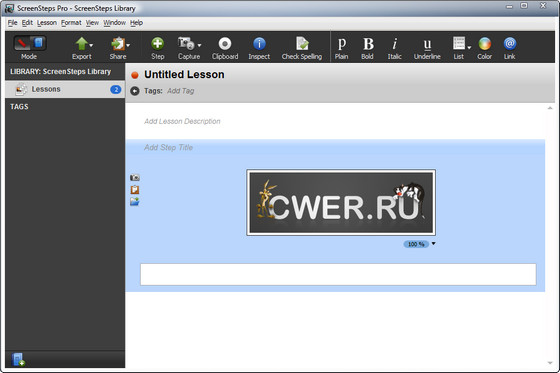 Основная специализация ScreenSteps - создание инструкций и руководств пользователя, в которых приходится много использовать скриншотов. С помощью приложения вы можете создавать так называемые "уроки", которые состоят из серии снимков с соответствующими примечаниями и пояснениями. Отметим также, что в каждый снимок можно обрабатывать по своему усмотрению, для чего в комплекте идет неплохой набор инструментов - масштабирование, обрезка, выделение объектов, нумерация.