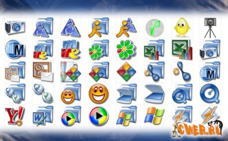 Набор стильных сине-голубых иконок для украшения системы и рабочего стола Windows.