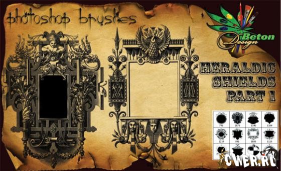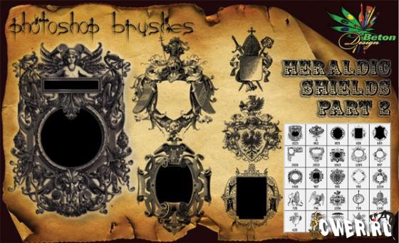 25 кисточек высокого разрешения с элементами геральдических знаков и щитов, размер от 500 до 2033 пикс