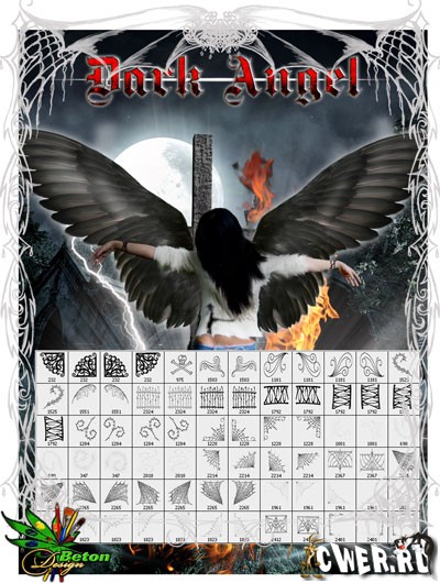 Кисточка для Photoshopа "Dark Angel" с 72 готическими элементами высокого качества, размером от 800 до 2000 пикселей