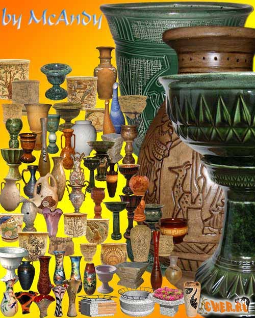 Сосуды для оформления рамочек, коллажей. Формат PNG - прозрачный фон. Размер архива - 75 МБ. 1 часть. Отличное качество!