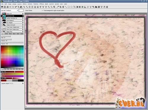 TwistedBrush Pro Studio 15.29 - графический редактор, "заточенный" под максимальное приближение к рисованию натуральными инструментами. Имеется полноценная эмуляция взаимодействия красок на холсте в зависимости от состава краски (масло, акварель, карандаш).