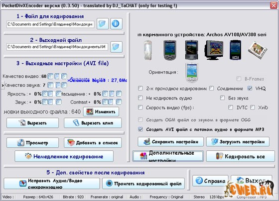 Portable Pocket Divx Encoder 0.3.50 rus предназначена для конвертирования фильмов для КПК и Смартфонов. Огромное количество настроек, таких как качество видео, разрешение, битрейт, обьем и прочее...