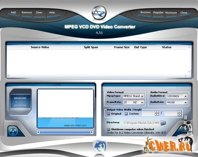 A-Z MPEG VCD DVD Video Converter - конвертер видео файлов в MPG, VCD, SVCD, DVD, MPEG форматы.