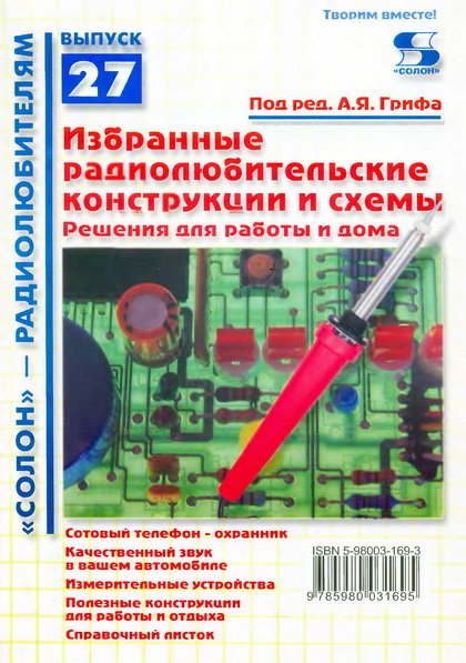 Характерная черта данной книги публикация для энтузиастов-конструкторов статей, охватывающих самые неожиданные направления применения электроники в любительском творчестве. Здесь и сотовый телефон в электронной охране, и добрая дюжина оригинальных схем для интегральных УМНЧ в автомобильных аудиосистемах, и самые различные решения сборки генераторов звуковой частоты на операционных усилителях. Но особый интерес предоставляет статья использования микроконтроллера в любительской практике на примере создания измерителя ТС-параметров. В статье даны рекомендации по программированию и "прошивке" микроконтроллера с помощью компьютера.