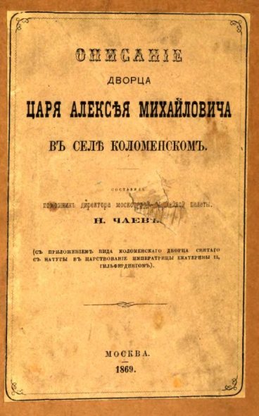 Издание дает подробное описание подмосковного дворца царя Алексея Михайловича в селе Коломенском. В книге приведены малоизвестные исторические факты, связанные с постройкой и устройством дворца, ведением дворцового хозяйства и пр.