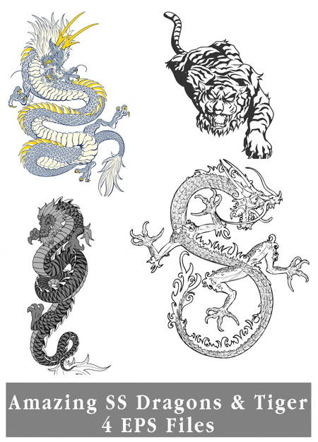 120 драконов в 5 векторных форматах (AI, EPS, SWF, CDR, DXF)