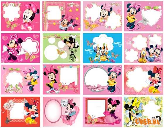 19 фоторамок с Минни Маус, формат: PSD, качество: 150 dpi, размер: 1570х1240, слои: отключены