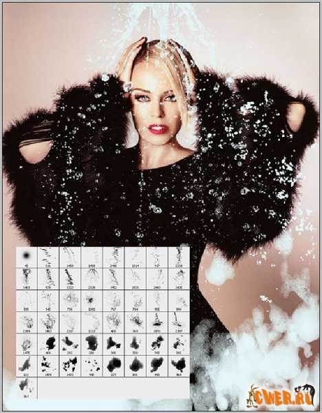 Высокого качества кисточка содержит 48 элементов- это водные и пенные брызги, размером от 400 до 2500 пикселей. В архиве вы так же найдете PSD файл с отключенными слоями, который содержит все исходники для этой кисти на отдельных слоях