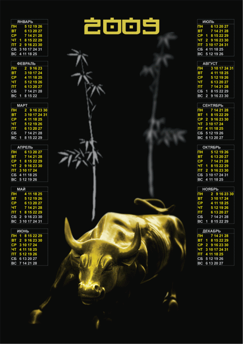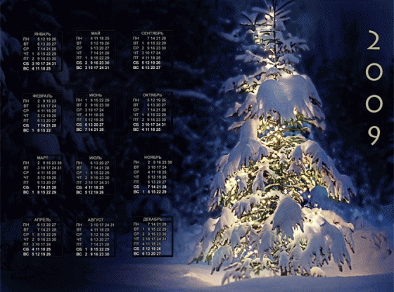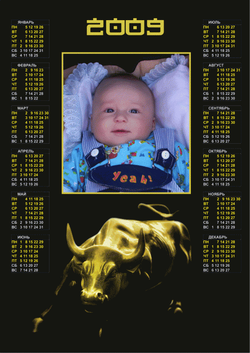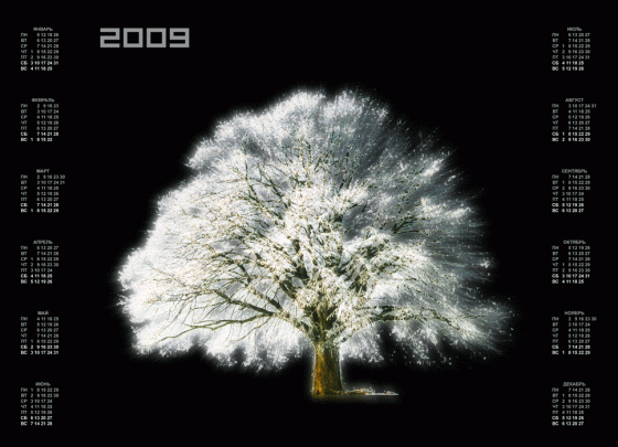 Календарь на 2009 год с местом для Вашей фотографии, в формате PSD, слои отключены, 2362x3543, 300 dpi