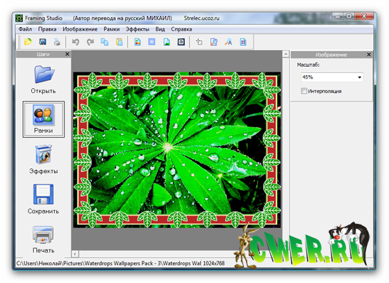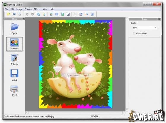 Простая в использовании программа для наложения рамок, масок и границ на фотографии, сочетающая в себе компактность, лёгкость в освоении, высокую скорость работы и богатые функциональные возможности. Передовые технологии обработки изображений позволяют добиться высочайшего качества результата любому пользователю. На выбор предоставляются классические и современные рамки из самых разных материалов, а также маски различных форм. Также вы сможете производить различные манипуляции с изображениями, включая обрезку фотографий и изменение размеров.
