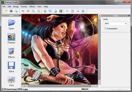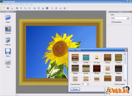 Framing Studio - простая в использовании программа для наложения рамок, масок и границ на фотографии, сочетающая в себе компактность, лёгкость в освоении, высокую скорость работы и богатые функциональные возможности. Передовые технологии обработки изображений позволяют добиться высочайшего качества результата любому пользователю. На выбор предоставляются классические и современные рамки из самых разных материалов, а также маски различных форм.