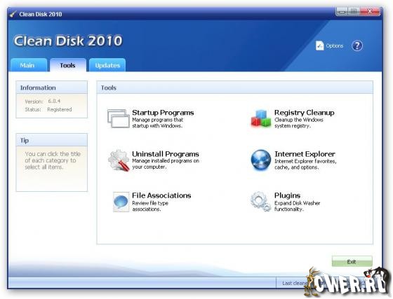 Clean Disk 2010 - это оптимизация системы. Поможет Вам поддержать свою систему, функционирующую при ее работе, удаляя ненужные файлы из Вашего компьютера, такие как инсталляционный остаток программ, решая проблемы DLLs, решая ошибки регистрации системы, и любые другие вещи, которые могут сделать Вашу систему медленнее и непостоянной.
