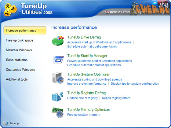 TuneUp Utilities предназначена для оптимизации и поддержания нормальной работы операционной системы Windows. Все утилиты этого пакета объединены в единую графическую оболочку. Для запуска той или иной утилиты нужно выбрать ее название в списке и кликнуть по ней мышкой. После этого открывается диалоговое окно, в котором и производятся все соответствующие действия. Возможности пакета TuneUp Utilities весьма обширны: настройка различных системных функций, оптимизация работы оперативной памяти, сбор подробной информации о системе (как программной, так и аппаратной ее частей), очистка битых ярлыков и мертвых ссылок, встроенный редактор реестра, удаление файлов с жесткого диска без возможности их восстановления. Работать с этой программой легко, поскольку не нужно выполнять сложных и непонятных действий.