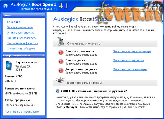 Обновилась Auslogics BoostSpeed. Программа оптимизирует компьютерную память, ускоряет загрузку Windows, повышает быстродействие Microsoft Office, The Bat, FireFox, Opera, чистит реестр и диск компьютера. После дефрагментации реестра BoostSpeed, скорость компьютера возрастет за счет уменьшения фрагментации файлов реестра, уменьшения их размера, а также благодаря устранению ошибок в реестре. Помимо этого BoostSpeed предлагает мощные возможности очистки реестра и диска, что в свою очередь позволит вашему компьютеру работать более быстро и эффективно.