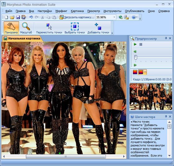 Morpheus Photo Animation Suite - мощный программный пакет, сочетающий в себе все возможности создания морфинга, создающего плавный переход из одного объекта фотографии в другой.