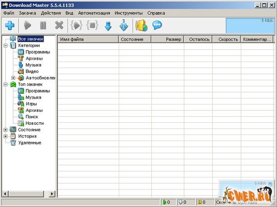 Новая версия качественной качалки Download Master, которая эффективно решает 3 главных проблемы, возникающих при закачке файлов из Интернет: скорость закачки, продолжение прерванных закачек и управление закачанными файлами. Основными чертами, выделяющими Download Master среди других программ, являются высочайшая эффективность работы и удобный пользовательский интерфейс.