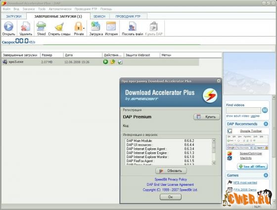 Обновился менеджер закачек файлов из Интернета. Данная программа закачивает файлы в многопоточном режиме, поддерживает интеграцию с различными браузерами (Internet Explorer, Opera, FireFox и Maxthon), может закачивать файлы, расположенные в файлообменных сервисах, в частности, с RapidShare.com. Программа не требовательна к ресурсам компьютера.