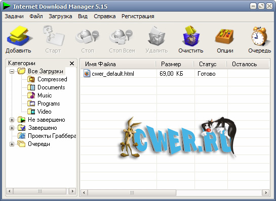 Internet Download Manager предназначен для организации загрузок файлов из Интернет. В программе реализованы различные методы ускорения загрузки, динамическая сегментация файлов и одновременное скачивание нескольких частей, использование свободных открытых подключений без реконнекта и многое другое. Имеется встроенная звонилка для соединения по расписанию, поддержка файрволлов, прокси и зеркал, FTP- и HTTP-протоколов, редиректов, куки, очередей закачки, авторизации пользователя. Internet Download Manager интегрируется в Microsoft Internet Explorer, Netscape, MSN Explorer, Opera, Mozilla и автоматически перехватывает закачки.