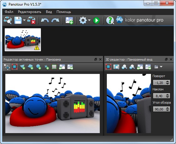 Kolor Panotour - революционная программа в создании туров по галереям из цифровых фотографий, программа освободит вас от задач программирования. Все это делается в несколько кликов, используя интуитивно понятный интерфейс.