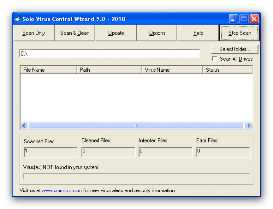 Solo Antivirus 2010 9.0.1 - антивирус от компании SRN Micro. Антивирусное приложение с полным набором функций программ этого класса. Сканирование системы на обнаружения соответствий новейшим, регулярно обновляемым описаниям вирусных программ. Безопасное удаление всех видов инфекций. Защита компьютера в реальном времени с проверкой файлов, получаемых с электронной почтой, из интернет и по локальной сети. Планировщик, интеллектуальный анализ критически важных систменых файлов. Прост в использовании, не требователен к ресурсам.