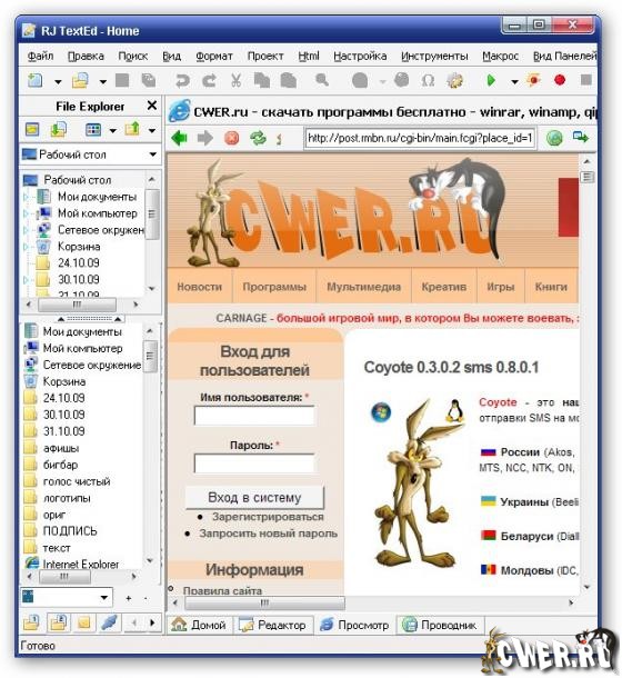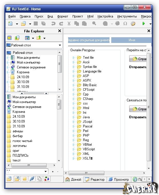 RJ TextEd - юникодный редактор со множеством возможностей для редактирования текста, html-документов, java-скриптов и т.д. Открытие множества документов в многовкладочном окне, подсветка и проверка синтаксиса, подсказки при вводе кода, закладки, неограниченное undo/redo, редактор css, html-превью, встроенный ftp-клиент, поддержка email, поддержка drag'n'drop, поддержка скинов и многое другое.