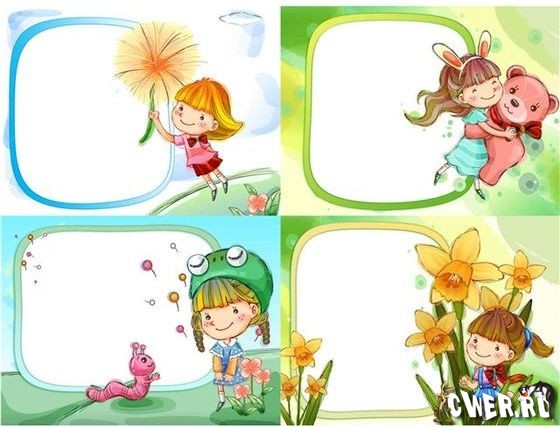 В наборе 4 яркие рамочки из весенних цветов для оформления фотографий